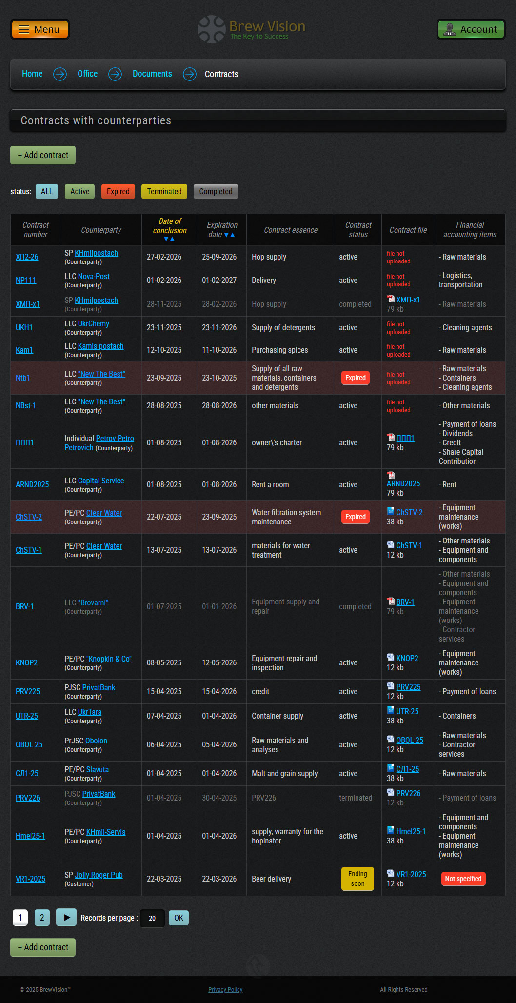 - Upload, edit, delete contracts