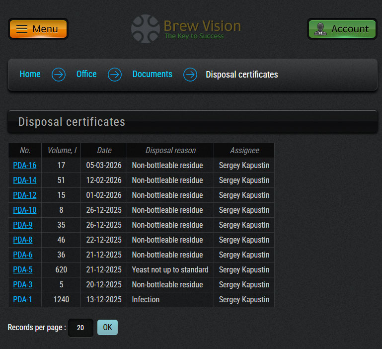 - Disposal certificates