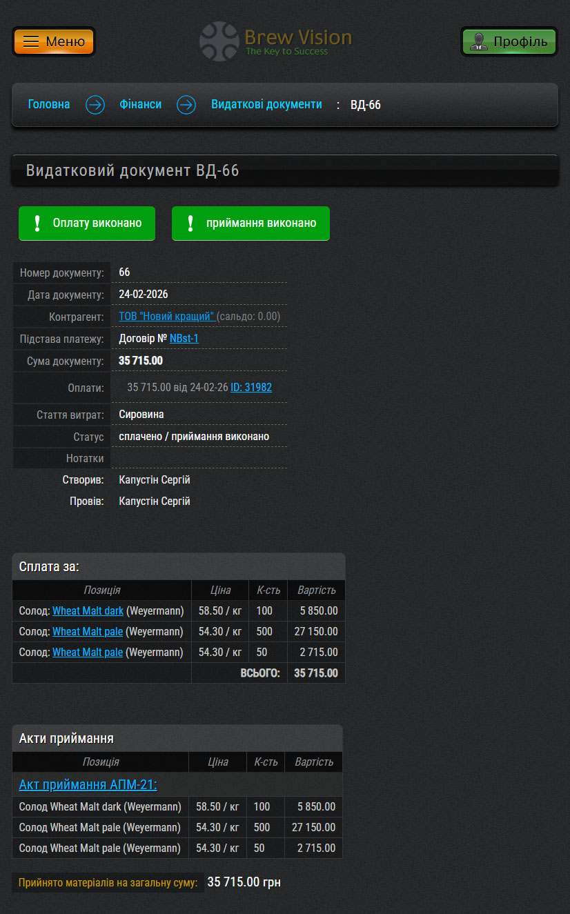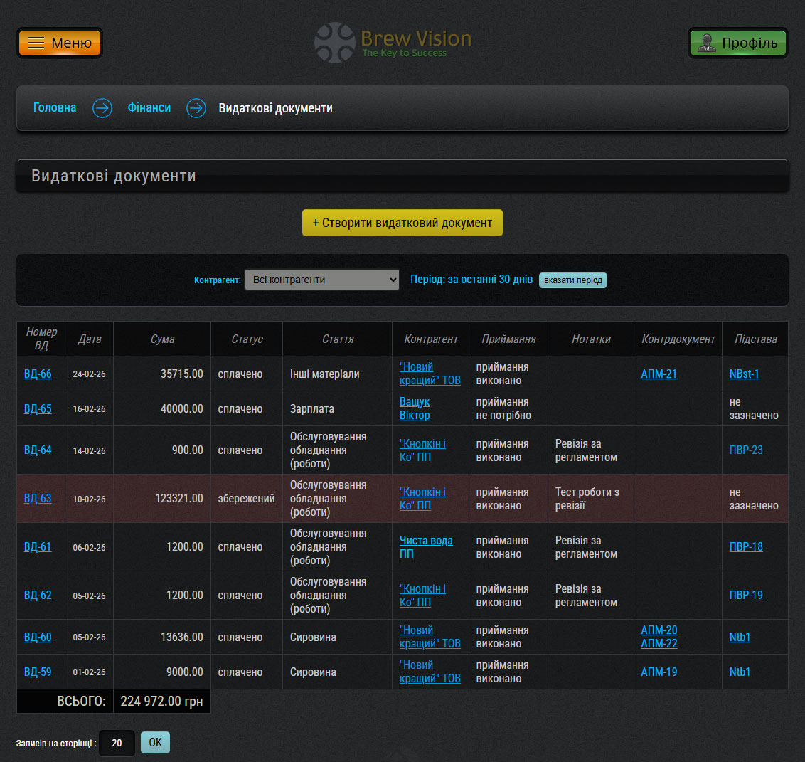 Скріншот розділу "Видаткові документи":