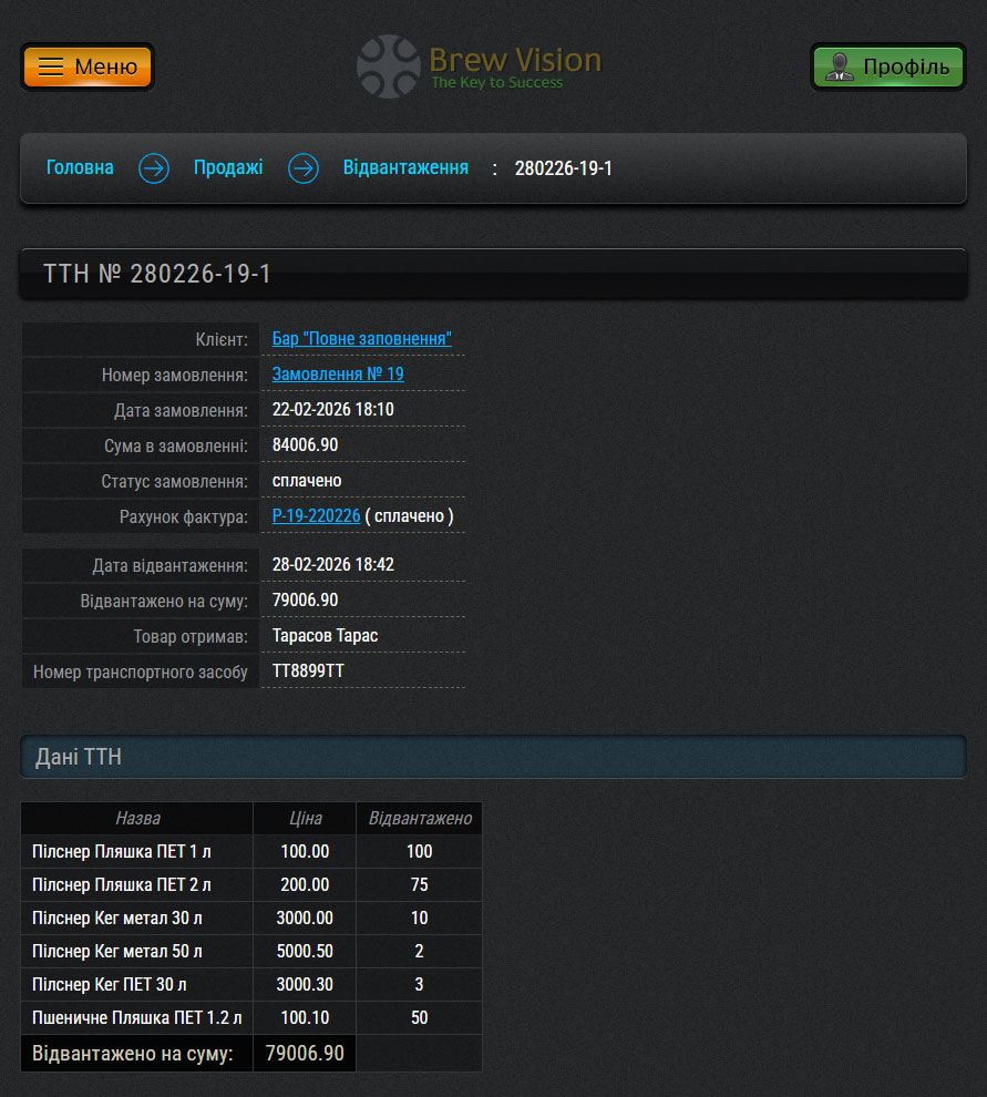Сторінка ТТН: