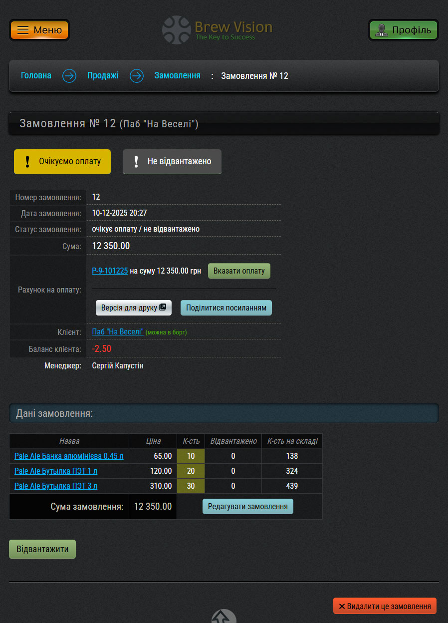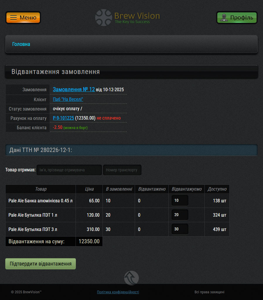 Відвантаження замовлення: