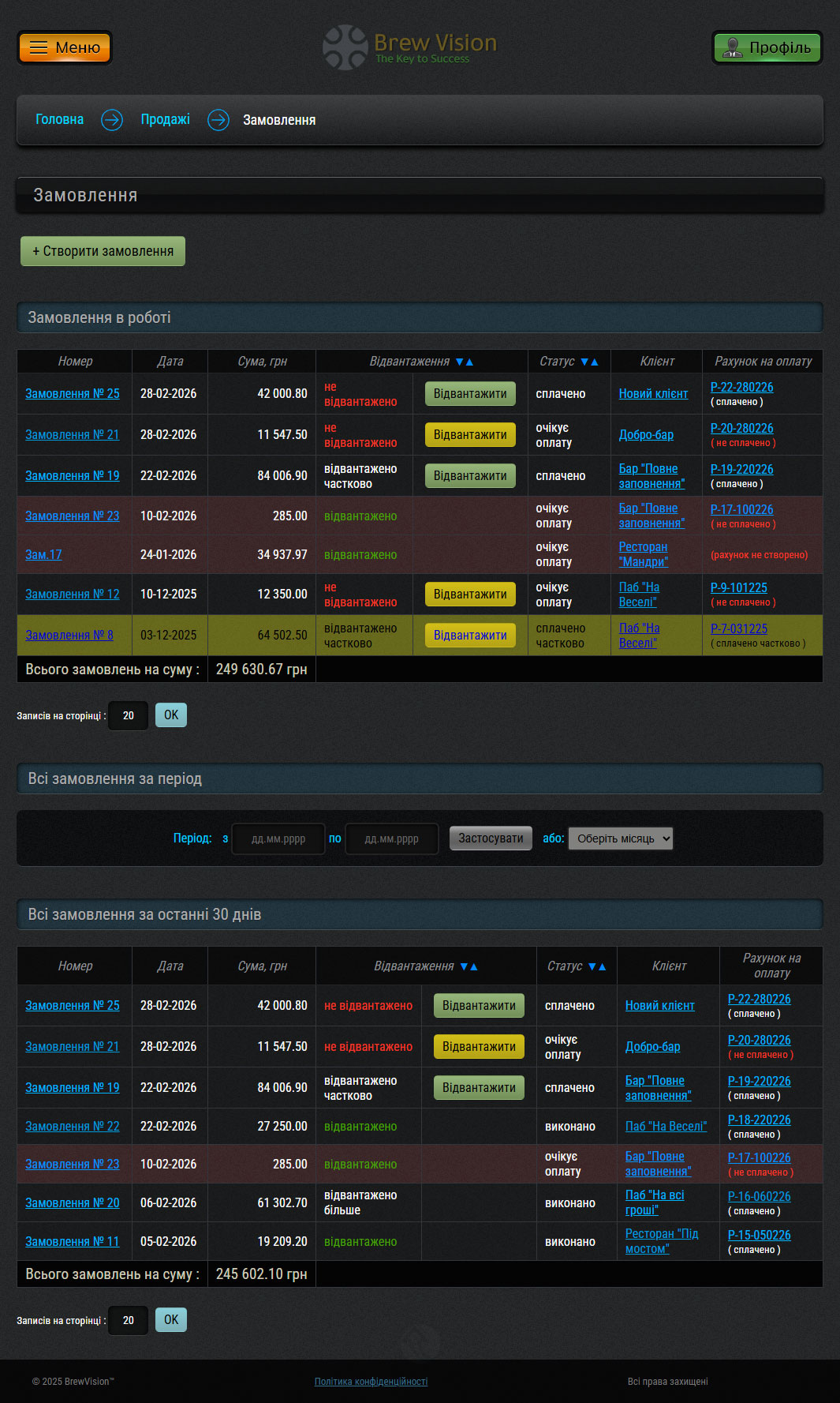 Скріншот сторінки розділу "Замовлення":