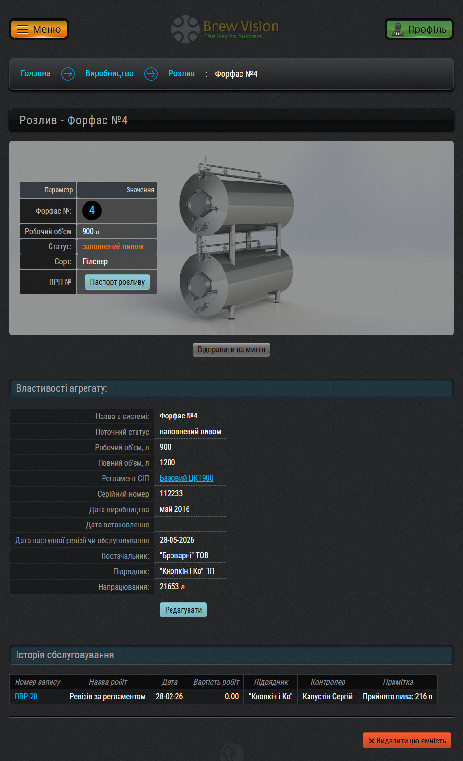 - Перелік наявних у вас агрегатів для обробки (фільтрації та пастерізації) пива.